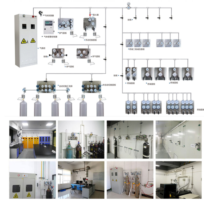 6、改善工作環境:集中供氣系統通過管道輸送氣體,避免了傳統氣瓶供氣方式中氣瓶在實驗室或工作區內占用的空間,改善了工作環境。同時,系統減少了氣體泄漏和噪音污染,提高了工作舒適度。